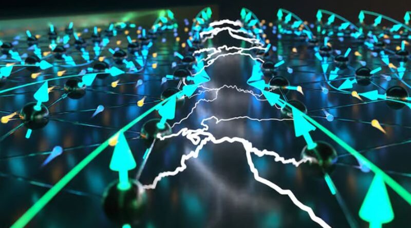 Créditos da imagem: Spiral magnetic order (light blue arrows) on the triangular lattice of NiI2 (black spheres represent Ni atoms) enables electrically switchable p-wave magnetism (white jagged lines) Image courtesy of the researchers Cientistas do Instituto de Tecnologia de Massachusetts descobriram um tipo completamente novo de magnetismo em um material cristalino personalizado, que eles chamaram...