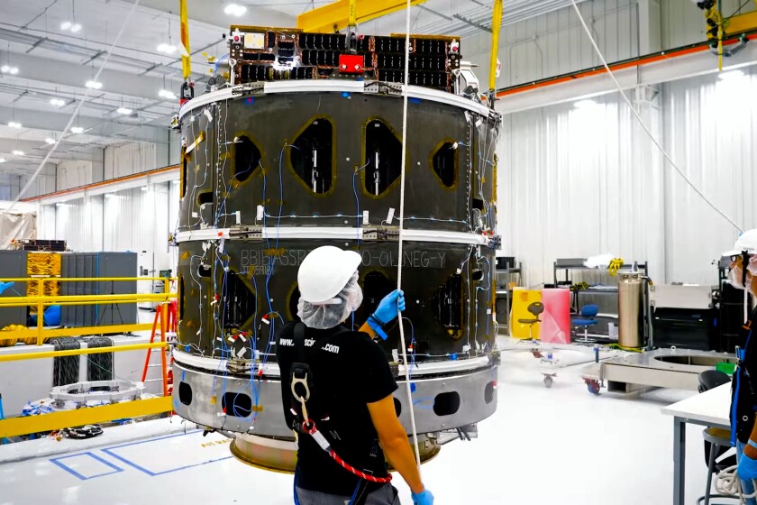 Desenvolvimento dos satélites BlueBird nas instalações da AST em Midland, Texas. AST SpaceMobile
