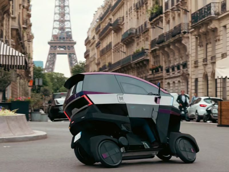 Crédits:The AEMotion tilting electric vehicle navigating the streets of Paris, France, recently