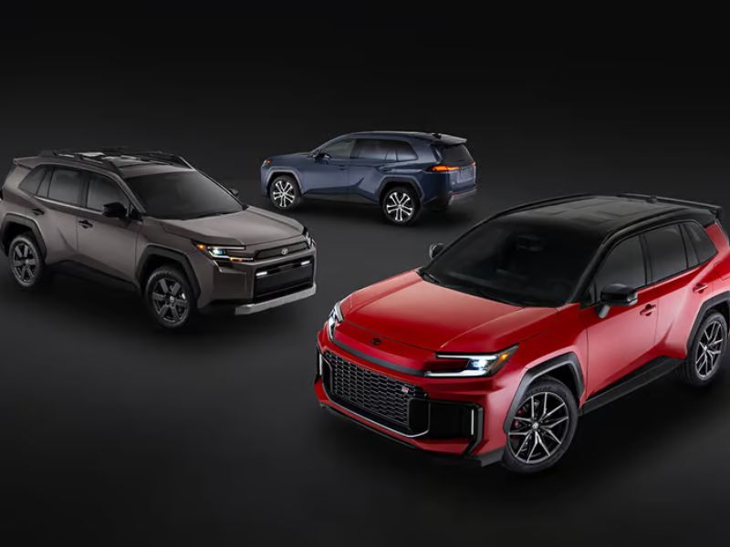 A linha inclui um RAV4 padrão, a versão robusta Woodland e a versão esportiva Gazoo Racing. Escolha entre os motores HEV ou PHEV, com tração dianteira ou integral, exceto a versão Woodland, que é apenas AWD.