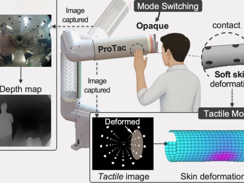 O Prof. Van Anh Ho, o Dr. Quan Khanh Luu e sua equipe no Instituto Avançado de Ciência e Tecnologia do Japão (JAIST) estão desenvolvendo uma abordagem chamada ProTac (abreviação de Proximidade e Detecção Tátil). Eles integraram a tecnologia em um segmento cilíndrico de braço robótico conhecido como elo ProTac, mas também poderiam adaptá-la a outros componentes robóticos.